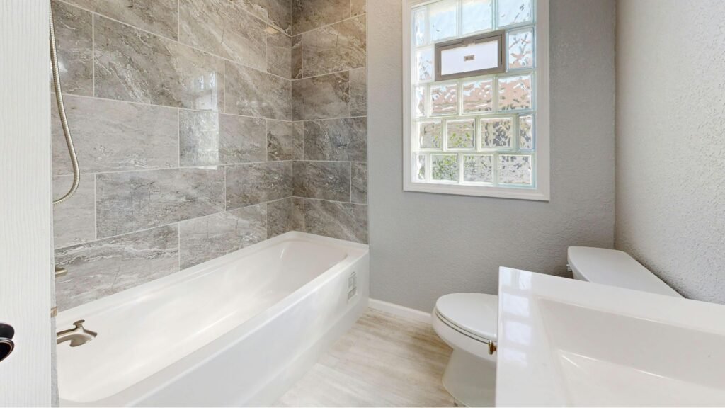 | Mid-Range Update | $9,000-$20,000 | 3-5 wks | Tile shower, quartz counters |
